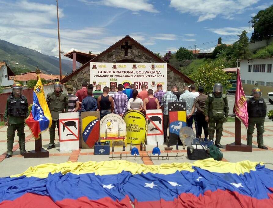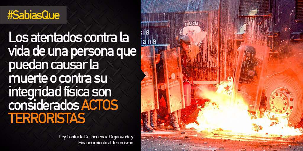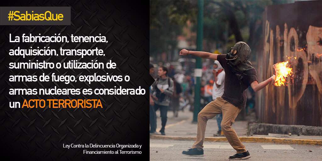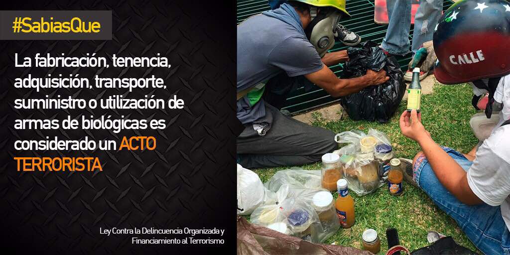 2) Ataques con explosivos cargados con municiones irregulares o combustible que pueden causar graves lesiones y la muerte. Incluye un conjunto de muertes de manifestantes que portan y usan estos dispositivos contra efectivos militares / policiales y que se autoinfringen daños por mala manipulación. Estos artefactos, de fabricación artesanal y diseño precario, se han convertido en la segunda arma más usada por los activistas opositores. Conocidos como morteros y fabricados con tubos de plástico para aguas servidas, ha sidio reconocido como parte del equipamiento de los combatientes y los propagandistas de la MUD los han incorporado en producciones audiovisuales de amplia difusión en redes sociales. Sin embargo su mayor visibilidad lo comenzó a tener a partir de la muerte del adolescente Neomar Lander, ocurrida el 7 de junio en Chacao, quien no logró lanzar un explosivo de gran poder que ya había encendido, y que al estallar le destrozó el pecho. Vale señalar que junto a Lander se encontraba el diputado de Primero Justicia, Miguel Pizarro, quien trató de atribuir la muerte a una bomba lacrimogena. Posteriormente, ocurrieron muertes en circunstancias similares en Barquisimeto, Táchira y Carabobo. Una semana antes de la muerte de Lander, una investigacion de la PNB y el Sebin logró identificar y capturar a una banda de empresarios que atacaron con dispositivos similares la base aérea La Carlota. Un evento más reciente fue la detonanción controlada a distancia de una bomba incendiaria contra efectivos motorizados de la GNB, el pasado 10 de julio en el distribuidor Altamira, y que causó quemaduras a tres funcionarios.