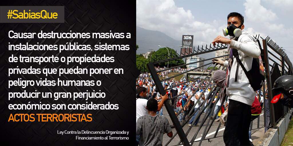 Una veintena de categorías de acciones delictivas ha venido usando en forma reiterada y sistemática la oposición venezolana durante los casi cuatro meses de “manifestaciones” públicas que han causado más de 100 muertes, miles de heridos e incalculable pérdidas materiales, en el marco de un plan que no oculta su propósito de desalojar del poder al presidente Nicolás Maduro.