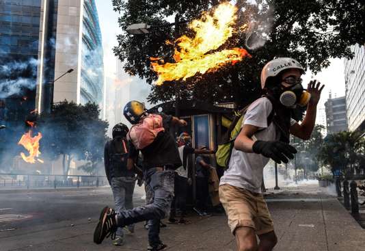 1) Quema de personas. Esto incluye homicidios y lesiones graves por uso de bombas incendiarias lanzadas contra fuerzas del orden, hasta asesinatos deliberados tipo linchamiento tras rociar o empapar con gasolina a la víctima. La botella llena de combustible y dotada con una mecha, conocida popularmente como “bomba molotov” se ha convertido en el arma orgánica de los combatientes de la “Resistencia”, que viene a ser el equivalente a las fuerzas de choque de la oposición. El uso del fuego como arma se evidenció tras eventos que fueron captados fotográficamente por ocurrir en un escenario como Altamira, en el municipio Chacao, este de Caracas. El 3 de mayo un joven combatiente,